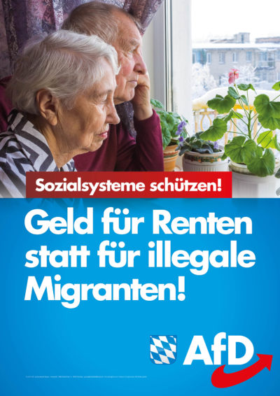 - Cartel de AfD, «Dinero para pensiones, en vez de para inmigrantes» . /AfD