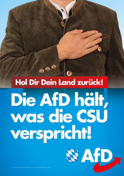 - Cartel de AfD, «AfD mantiene, lo que la CSU promete» . /AfD