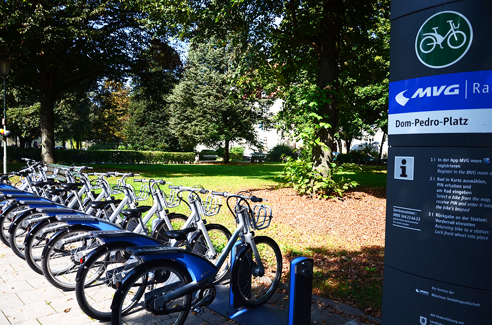 Desde 2015, la Münchner Verkehrsgesellschaft (MVG; Sociedad de Transporte Público de Múnich) ha añadido a su oferta un nuevo medio de transporte. Ahora no solo gestiona los autobuses, tranvías y metros de Múnich, sino que también ofrece una red de 1200 bicicletas públicas repartidas en 125 estaciones por todo el casco urbano, es la MVG Rad.