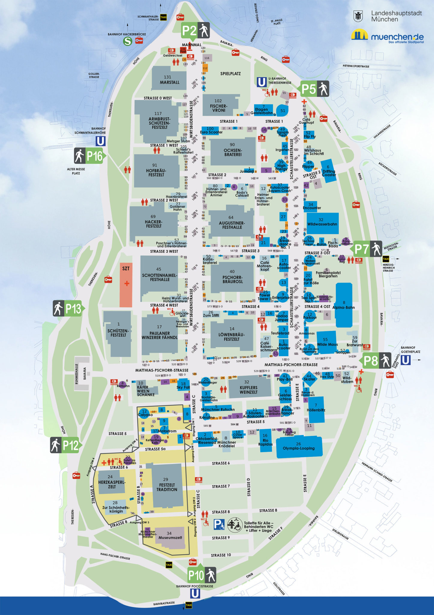 Dentro del llamado Oide Wiesn, o recinto tradicional, existen dos carpas: la Festzelt Tradition, que suma unos 8000 asientos y donde sirven cerveza Augustiner, así como la Herzkasperl Festzelt, que tiene capacidad para unas 2500 personas y dispensa cerveza Hacker-Pschorr.