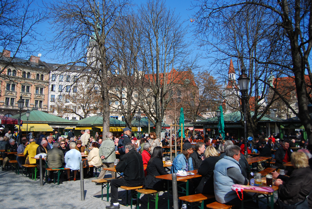Siguiendo por una de las arterias comerciales del centro, la Sendlinger Strasse, llegamos a uno de los tesoros de la ciudad: la pequeña iglesia Asamkirche, uno de los ejemplares más preciados del rococó alemán. Una vez visitada, retrocedemos en dirección al mercado de la ciudad, el Viktualienmarkt. Aquí merece la pena dar una vuelta, recorriendo los puestos de flores, queso, verdura y fruta. Si vienes en época de primavera-verano encontrarás el biergarten (jardín de cerveza) del centro de la plaza abierto y probablemente concurrido. A los muniqueses les encanta disfrutar de los días de sol compartiendo mesa y cerveza en el biergarten.