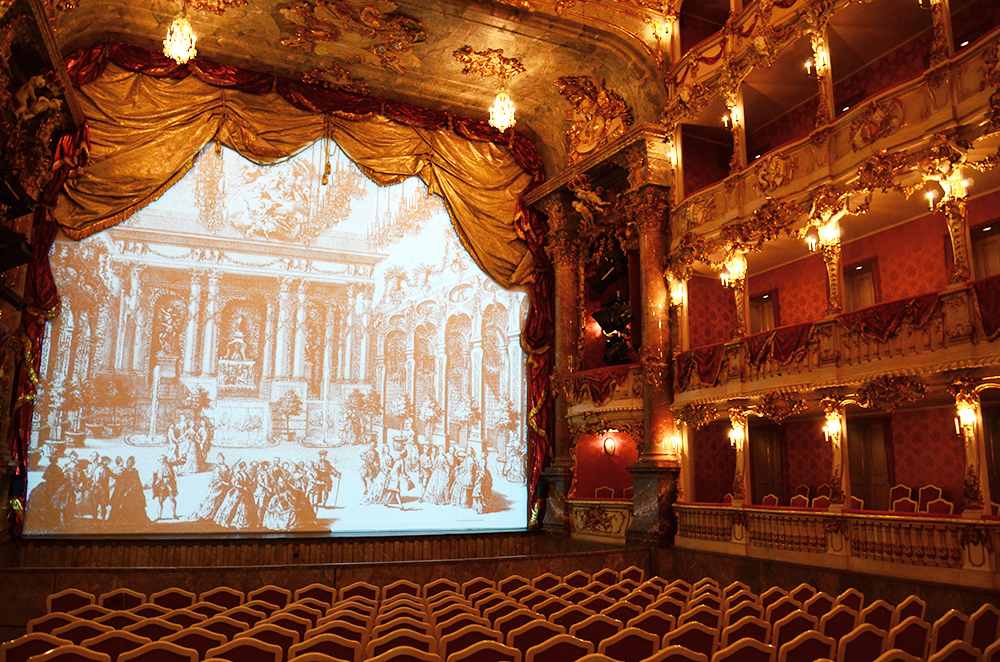 Construida a mediados del siglo XVIII por François Cuvilliés, la opera rococó de la Residencia real de Múnich fue destruida durante la II Guerra Mundial. Los elementos ornamentales rescatados de la destrucción son la base del actual Teatro Cuvilliés.